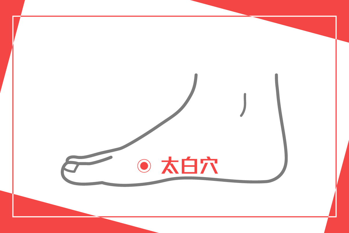 前人借用星宿與山川命名穴位。太白山以山命名,源自秦嶺中終南山的最高峰——太白山;此外,「太白」亦為金星之名。此穴位位於白肉際,屬足太陰脾經,脾土生金,故得其名。太白穴位於足內側緣,足大趾第一趾關節後下方,赤白肉際凹陷處。