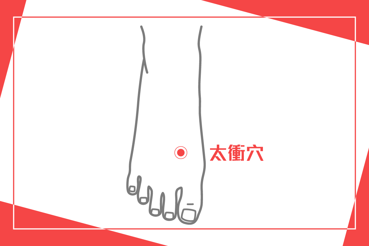 穴位位置:位於足背側,第 1、2 趾之間,趾蹼緣後方赤白肉際處,即大拇趾與二趾合縫後方赤白肉分界處凹陷中,稍偏向大拇趾邊緣。