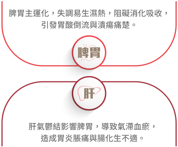 腸胃疾病在中醫視為脾胃失和、氣滯濕熱所致,常因飲食不節、壓力過大或外感風寒,