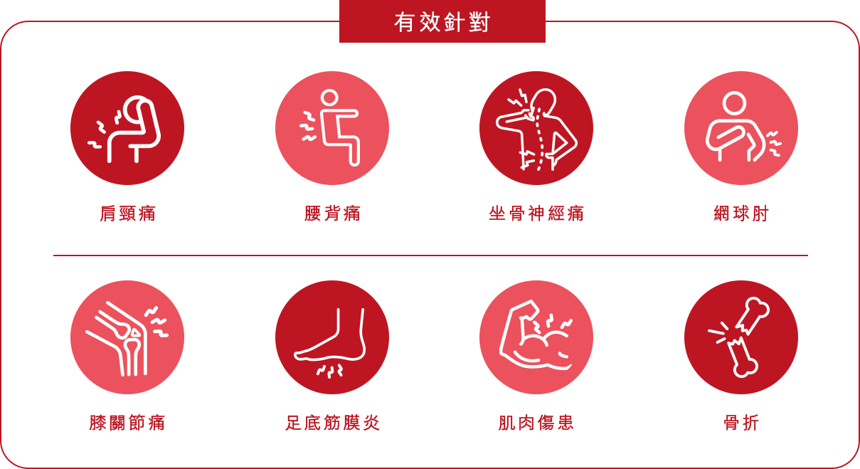 深入緩解炎症,即時減輕痛楚,改善痛症。