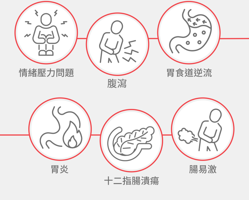 胃酸倒流、腸易激等不適,